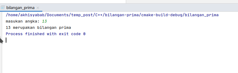 Contoh bilangan prima adalah 2, 3, 5, 7, 11, 13, 17, 19, 23, 29, 31, 37, 41, 43, 47, 53. Bilangan prima adalah bilangan yang hanya dapat habis dibagi oleh 1 dan dirinya sendiri. Artinya jika bilangan tersebut dibagi dengan 1 dan bilangan itu . Pelajari contoh program c++ untuk menentukan bilangan prima, dengan menggunakan fungsi rekursif dan juga program deret bilangan prima. Menentukan apakah suatu bilangan merupakan bilangan prima atau bukan ?