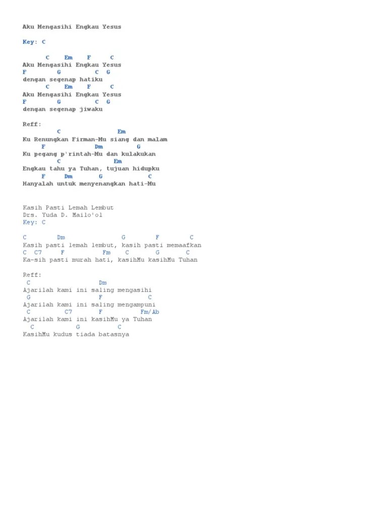0 orang menyukai akor lagu ini. Hanya kau yesus keslamatanku pengharapan jiwaku. Ku sembah kau yesus kutinggikan yesus kasihmu besar, tak terhingga kau layak ditinggikan. Sehingga kau b'rikan yesus padaku. Melainkan beroleh hidup yang kekal.
